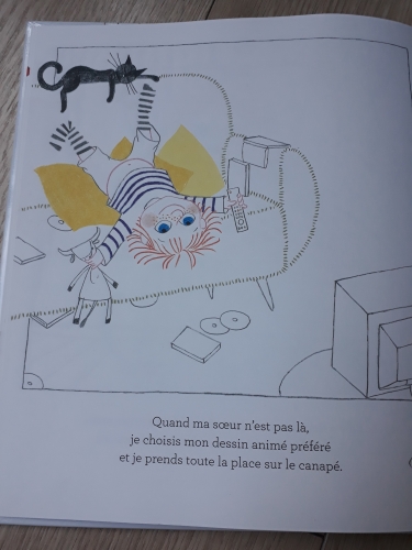 Contrairement aux aînés, les cadets et benjamins ont dû partager leurs parents, leurs jouets, parfois leur chambre. Alors quand, ils ont quelques jours sans le reste de la fratrie, ils profitent un peu de ce statut d’enfant unique. Ce fut le cas de ma cadette la semaine dernière. Quelques jours sans sa sœur. Et à l’occasion de notre sortie en tête-à-tête à la bibliothèque, nous avons trouvé ce livre.