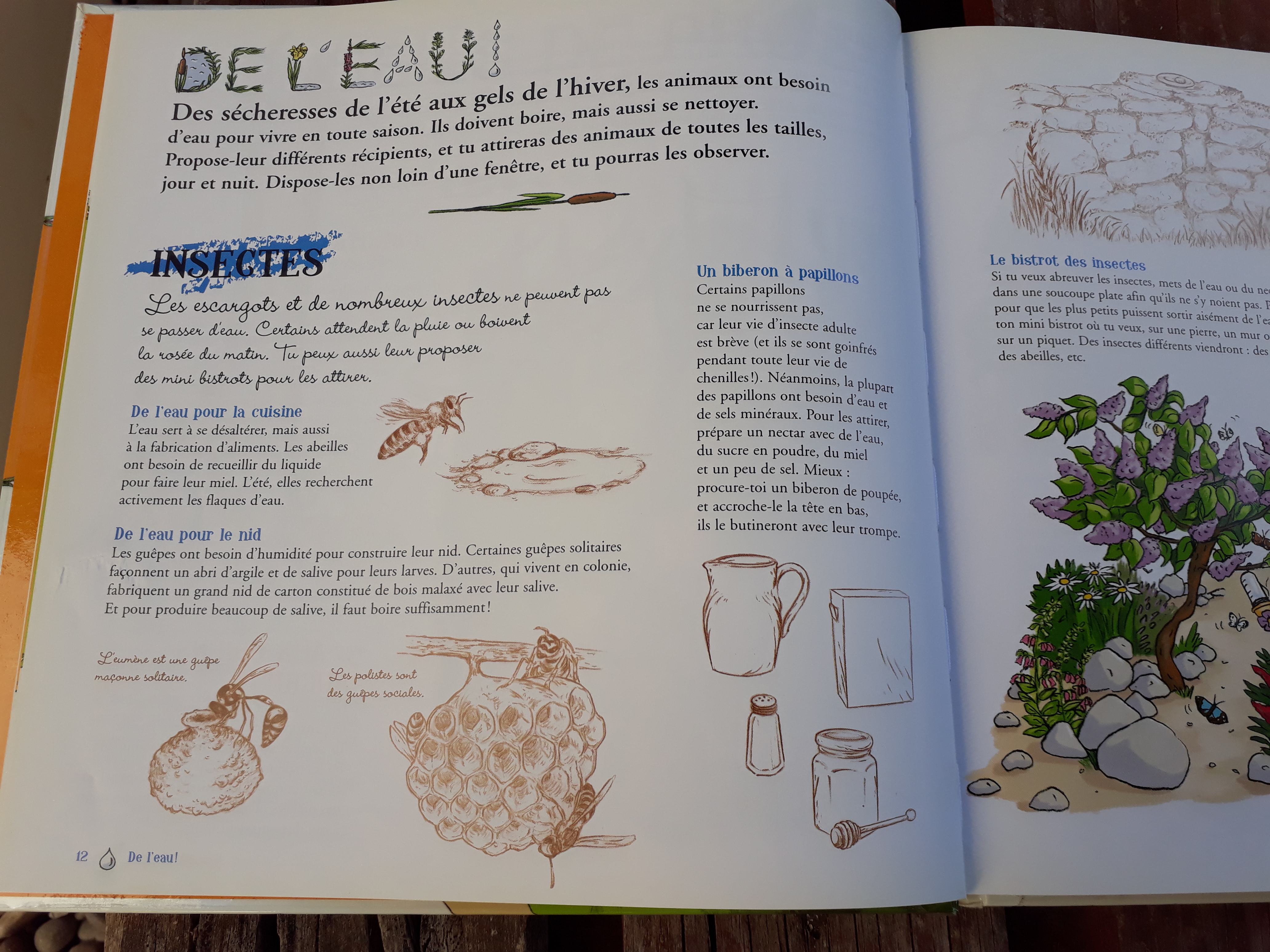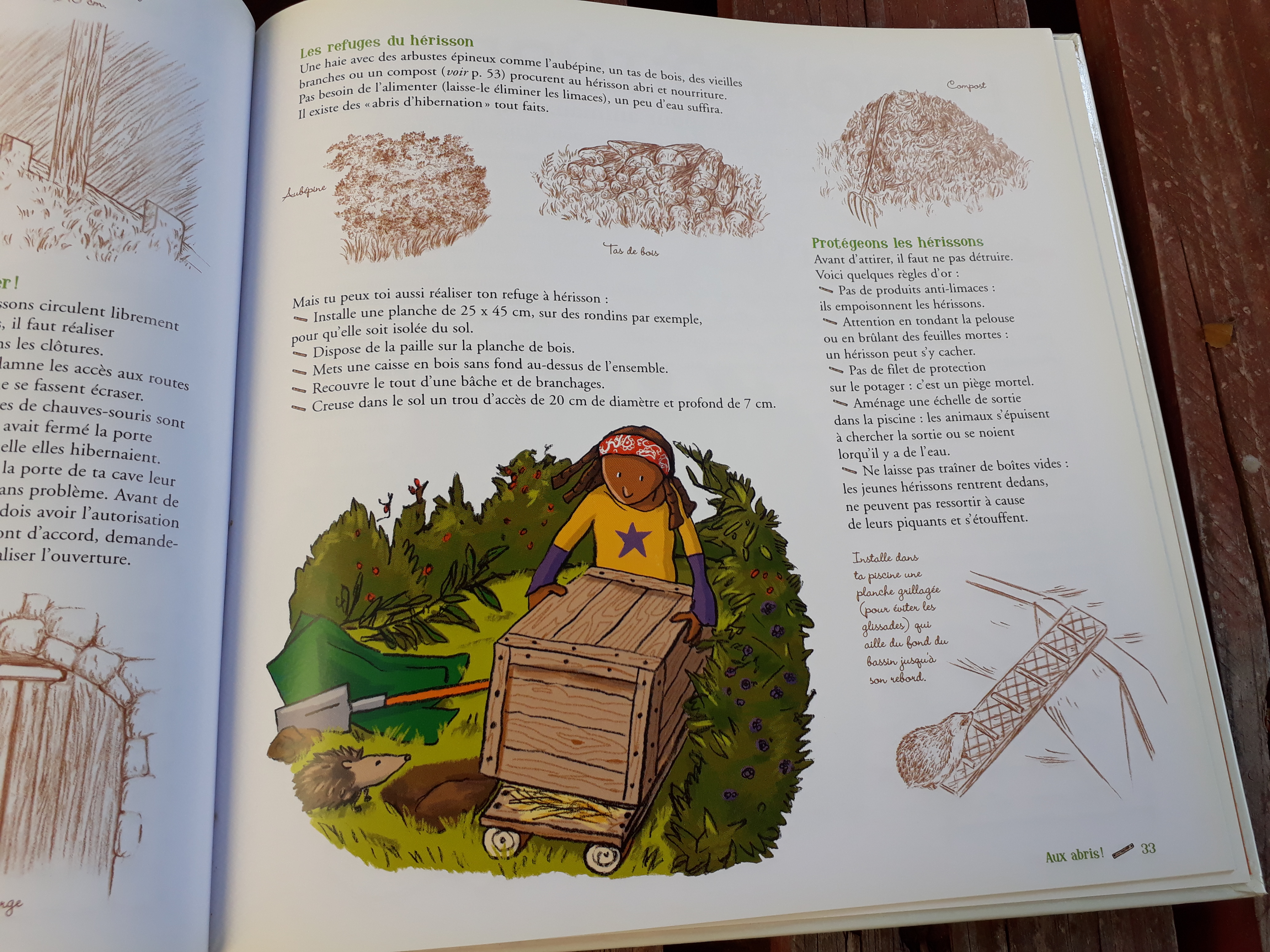 1. Super, ce livre a l’air très intéressant ! J’ai aussi créé une petite mare dans le jardin, l’idée était d’attirer des tétards. Ce n’est pas encore la saison, il faudra attendre. Pour les hérissons, je n’en ai aucune idée !