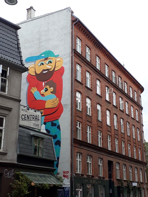 Changement de mode de locomotion, nous avons opté pour le vélo et vélo cargo pour découvrir le Christiania, le quartier alternatif avec ses maisons de brics et de brocs. S’y balader est agréable car on semble avoir quitter la ville pour la campagne. Mais avec des enfants, il vaut mieux éviter la rue principale où des vendeurs de cannabis vendent leur marchandise sans se cacher. Nous avons fait un tour à la galerie d’art ou ma fille ainée est restée perplexe, autant devant les œuvres que la cage d’escalier intégralement tagguée. Sinon, moi qui n’aime pas faire du vélo en ville, j’ai adoré rouler (en sécurité) dans Copenhague avec ses grandes pistes cyclables.