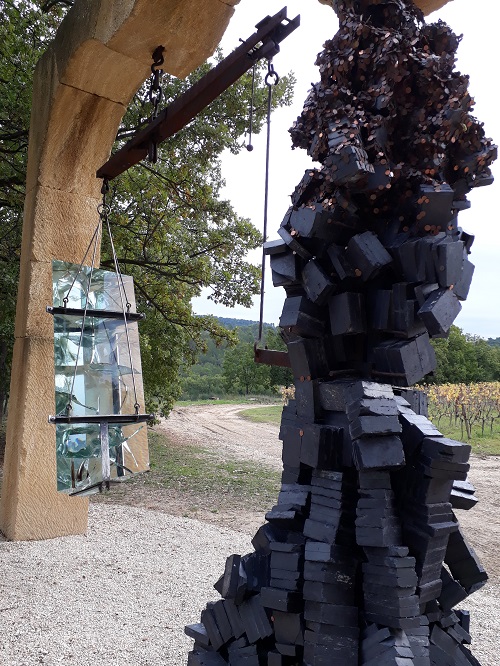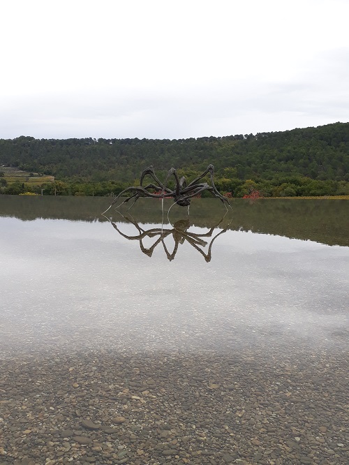 Nous y sommes allés à l’automne, quand les vignes ont pris des tons jaunes contrastants avec le ciel gris… et nous y avons passés un peu plus de trois heures. Sorties d’une araignée de Louise Bourgeois (notre troisième après Otawa et Bilbao) et d’un mobile d’Alexander Calder, nous ne connaissions pas les artistes exposés.