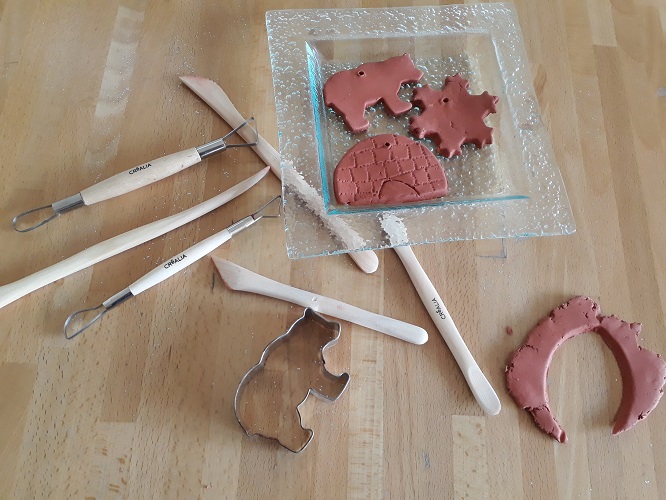 Il y a toujours plein d’idées de petites créations à réaliser à Noël que ce soit dans les magazines, les livres ou sur internet. Etoile en branche, sapin en palette, flocon de neige en perle ou santons en laine feutrée pour n’en citer que quelques-uns. C’est la pâte-auto-durcissante qui m’a inspirée. J’ai utilisé des emporte-pièces et des outils de modelage pour créer un mobile sur le thème du pôle nord.