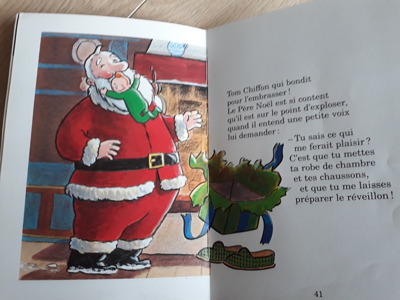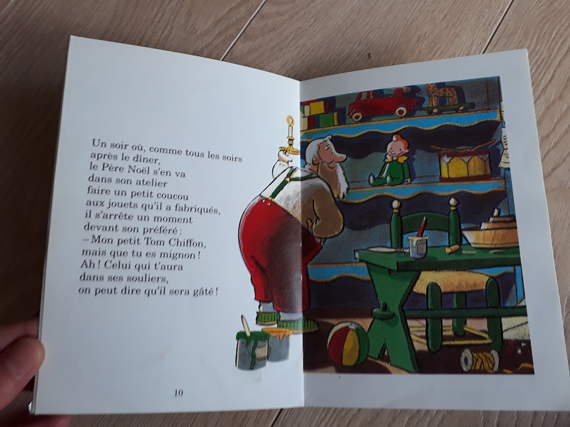 C’est un peu l’histoire de Gepetto et Pinocchio. Mais ici, c’est le Père Noël qui découvre dans son atelier une poupée de chiffon qui prend vie. Tom Chiffon vient lui tenir compagnie à quelques jours de Noël.