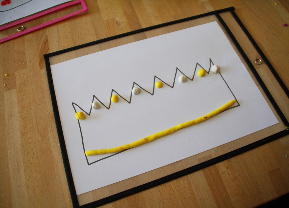 C’est très sympa comme activité. Et puis la pochette plastique est une super idée, ça permet de recommencer et de bouger les bouts de pâte à modeler sans utiliser changer de feuille.