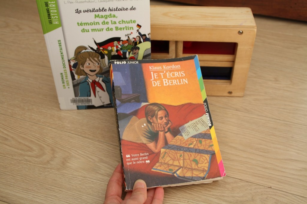 Notre prochain voyage sera… Berlin. Nous irons forcément voir le mémorial du mur de Berlin et alors c’est un sujet dont nous avons parlé avec la grande. J’ai trouvé le livre Je t’écris de Berlin dans une boite à livres et elle a emprunté à la bibliothèque La véritable histoire de Magda, témoin de la chute du mur de Berlin.