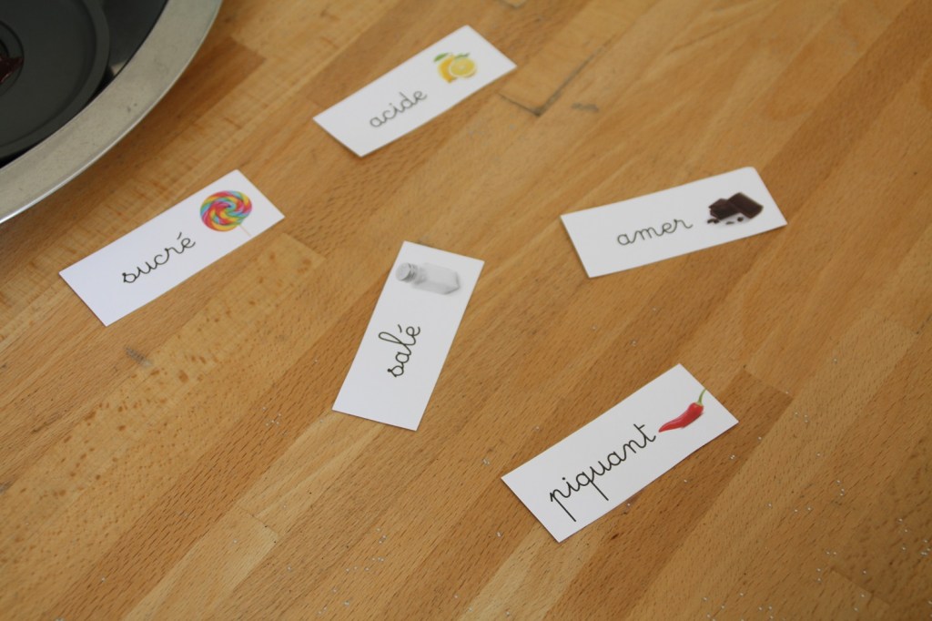 Les étiquettes viennent du livre Grands apprentissages Montessori pour petites mains (que je vais bien finir par vous présenter).