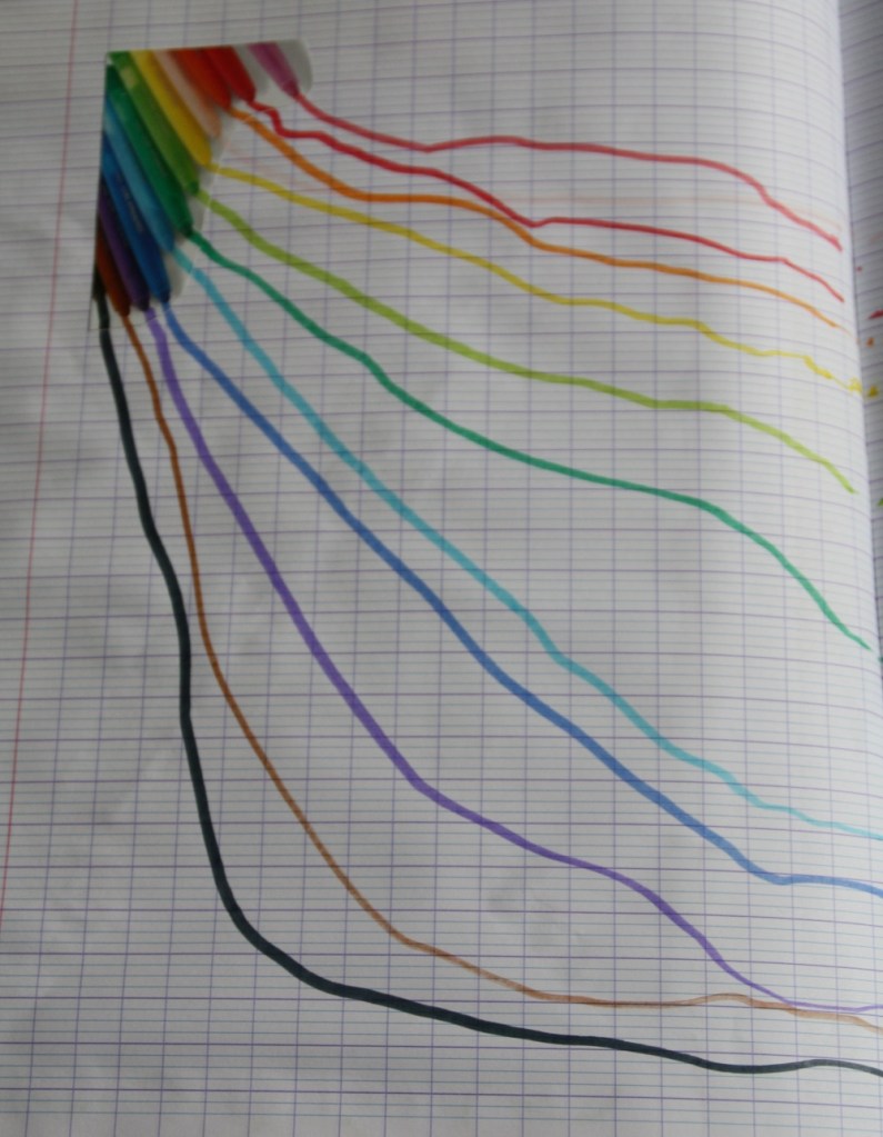 La deuxième idée est un peu plus difficile car il s’agit de prolonger les lignes droites existantes. Ici, j’ai utilisé une image de feutres trouvée dans un catalogue.