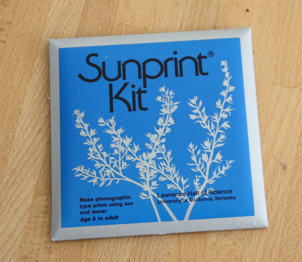 Cette semaine, nous avons découvert le principe de la photographie cyanotype avec du papier photosensible. C’est très simple à utiliser et j’aime beaucoup le résultat. Nous avons utilisé un Sunprint kit composé de feuilles de papier photosensible et d’un morceau de plexiglas.