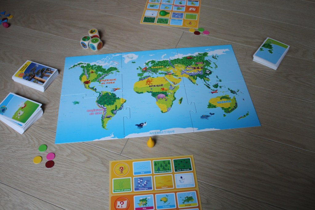On pioche une carte avec un petit détail du planisphère et il faut le resituer sur la carte du monde le plus rapidement possible. C’est une épreuve d’observation et de rapidité. C’est donc adapté à tous les âges.