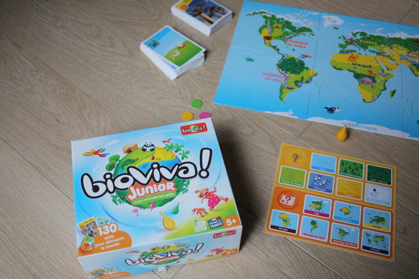 J’aime beaucoup le thème de ce jeu qui nous fait découvrir les beautés de la terre et sensibilise du coup à sa préservation ; et cette alternance d’épreuves éducatives et ludiques. Le plus des jeux Bioviva : ils sont fabriqués en France et de manière éco-responsable. Et contrairement à d’autres jeux de société, la boite est d’un petit format, juste adaptée à ce qu’elle contient (parfois les boites à demi vides, ça prend de la place dans les placards). Cependant, je pense que l’âge recommandé pour commencer à y jouer est plus 6 ou 7 ans, que 5 ans. Mais cela dépend, comme toujours, des enfants.