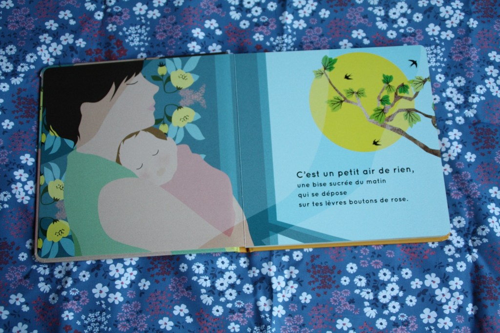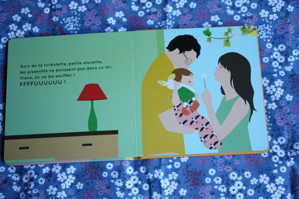 C’est un livre très doux, au texte poétique, aux illustrations plutôt simples mais avec quelques dessins très détaillés comme les coquelicots. C’est une invitation à découvrir la nature au printemps avec ses sens : l’herbe qui chatouille les pieds, le chant des oiseaux, les parfums de cette saison, les pissenlits à souffler, le soleil qui réchauffe… Le livre est accompagné d’un CD pour découvrir l’histoire en musique, avec un mélange d’instruments, de voix et de chants d’oiseaux.