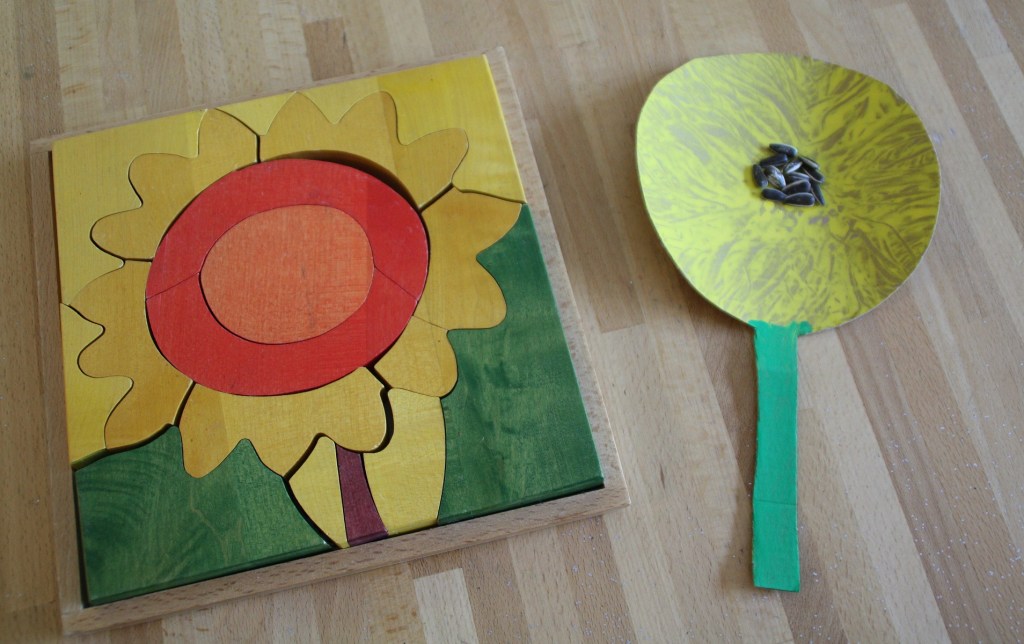 L’occasion aussi de ressortir de puzzle en bois d’une fleur de tournesol, pas si simple. Je le trouve superbe, mais ne me demandez pas où le trouver, je l’ai chiné l’an dernier et il n’y a pas de marque indiquée.