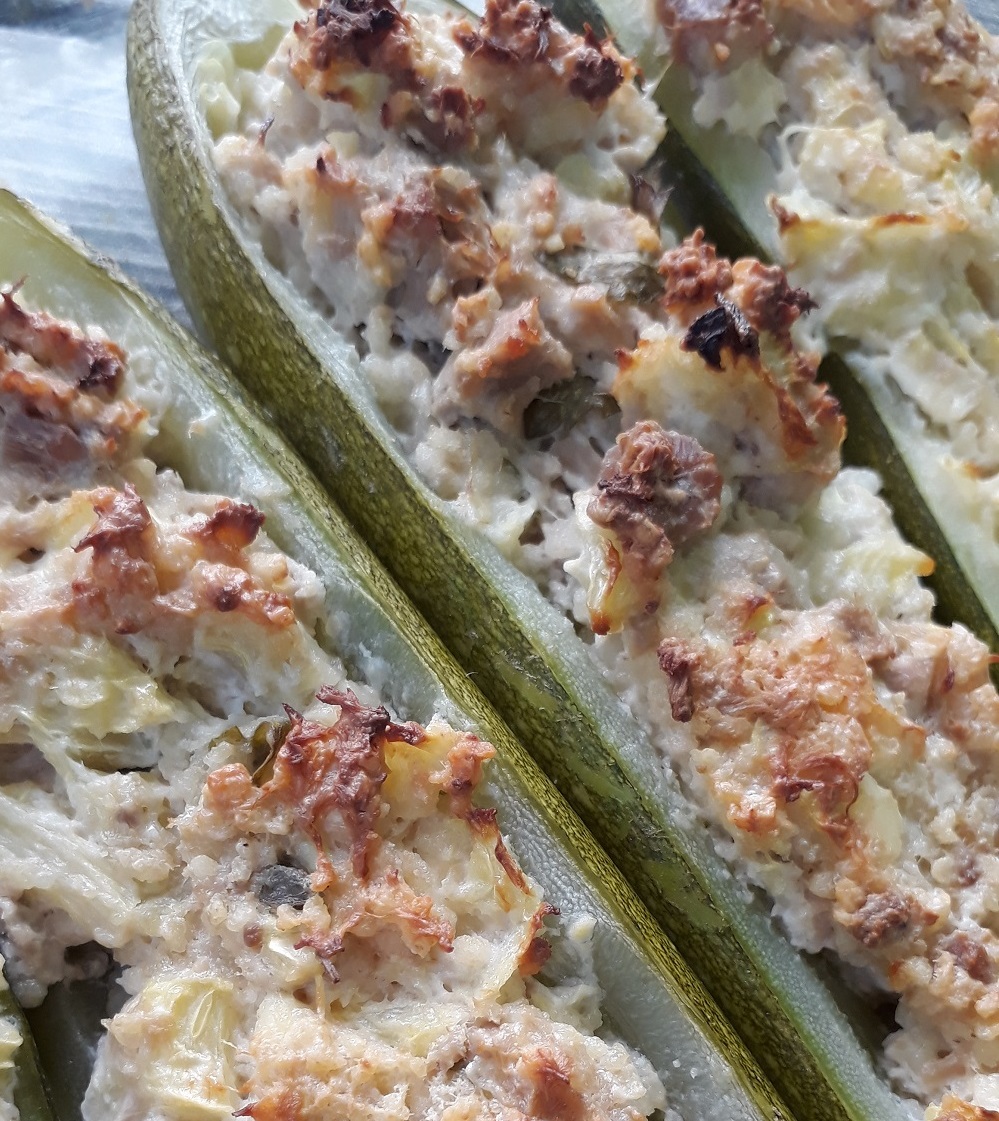 Il y a eu les étés cake, ratatouille, puis tian ; cet été, c’est en version farcie que l’on mange les courgettes (mais pas que, quand même). La recette est très simple. J’ai essayé d’indiquer des quantités ou grammages, mais je prépare toujours sans peser.