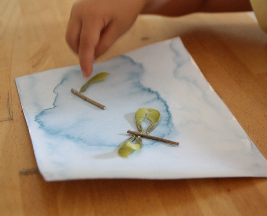 Après séchage, nous avons récupéré des samares et brindilles dans le jardin.