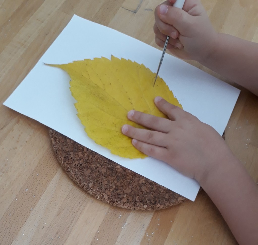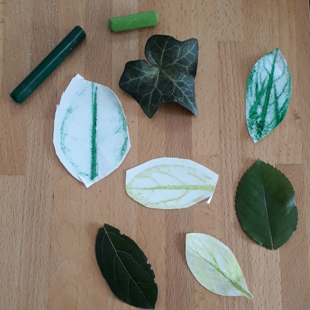 Et si nous prenions l’empreinte d’une feuille… en utilisant des crayons de cire