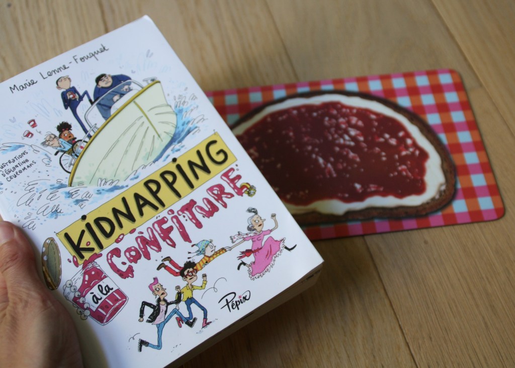 J’aimerais présenter plus souvent des romans jeunesse. C’est un peu moins mis en avant que les albums illustrés car c’est moins visuel forcément. Avec une (grande) lectrice de 9 ans à la maison, je suis souvent à la recherche d’idées de lecture. Même si elle choisit aussi toute seule ses livres, notamment à la bibliothèque. J’ai lu de nombreux avis positifs sur Kidnapping à la confiture et effectivement il a plu autant à elle qu’à moi.