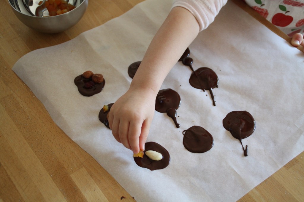 Comme ce sont les enfants qui les connaissent le mieux, je les ai laissé choisir ce qu’elles allaient préparer. L’aînée a choisi de pâtisser des sablés aux épices (je partagerai la recette bientôt, le temps d’arriver à me relire). La cadette a préféré refaire des mendiants.