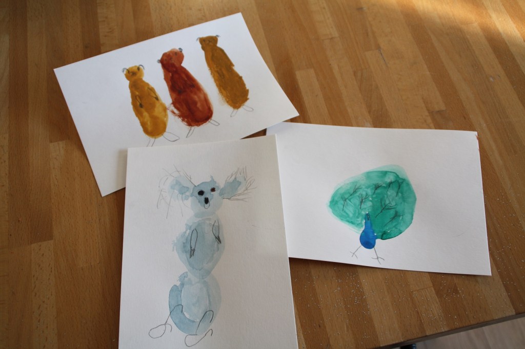 J’ai proposé à la cadette (4 ans) d’imaginer quelques animaux en s’inspirant du livre.