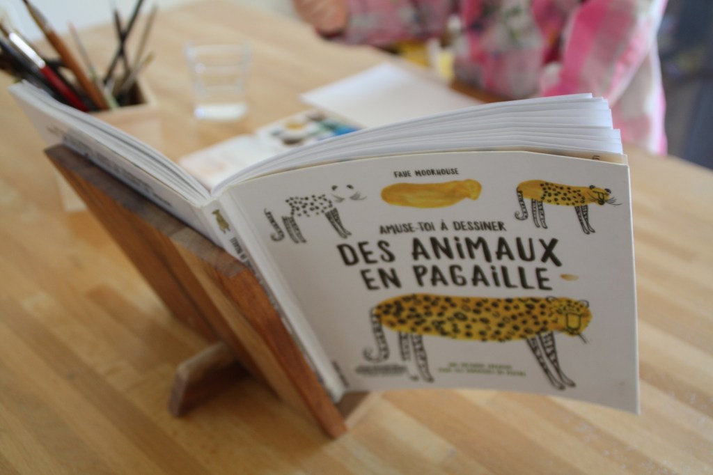 Nous avons encore le livre pour deux semaines, je pense que nous referons un atelier peinture et dessin et je m’y mettrais aussi. Si vous voulez aussi créer des animaux uniques, le livre Amuse-toi à dessiner des animaux en pagaille est de Faye Moorhouse et est publié chez Gallimard Jeunesse.