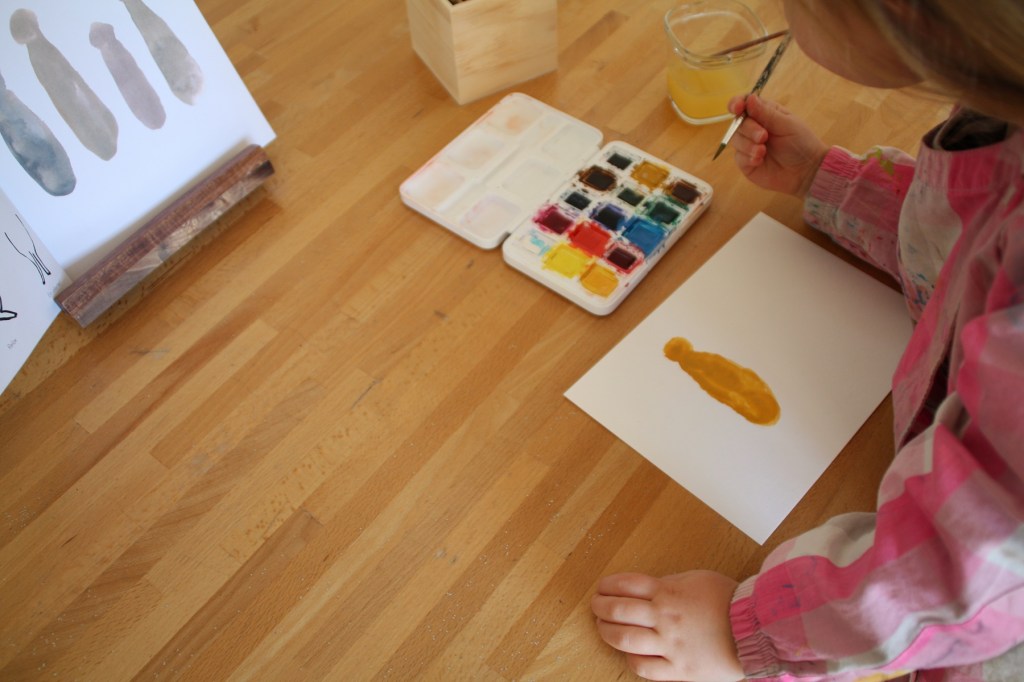 Elle a fait les taches avec de la peinture aquarelle et dessiné les détails au crayon. Et elle a vraiment beaucoup aimé. En partant d’une forme non identifiable, on arrive à un animal assez reconnaissable non ?