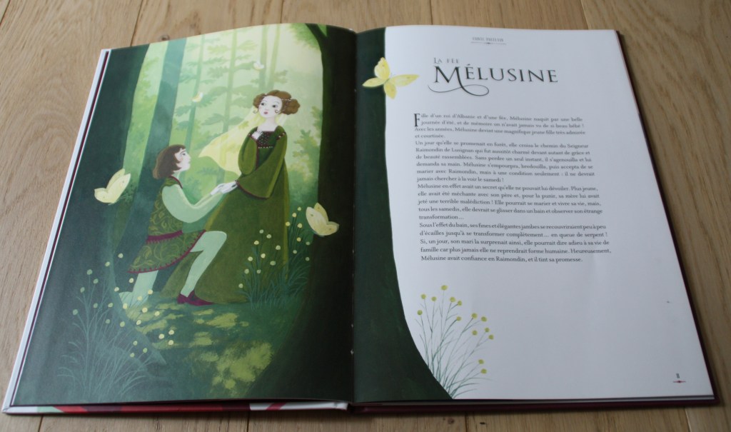 Si nous avons les livres des Princesses de légende et Sorcières de légende, c’est celui parlant des fées que j’ai décidé de vous montrer. Vous connaissez-vous probablement la fée Viviane née dans la forêt de Brocéliande, mais connaissez-vous la fée Zhinu et son histoire d’amour avec un éleveur, ou la fée Babouchka qui distribue des présents aux enfants de Russie ?