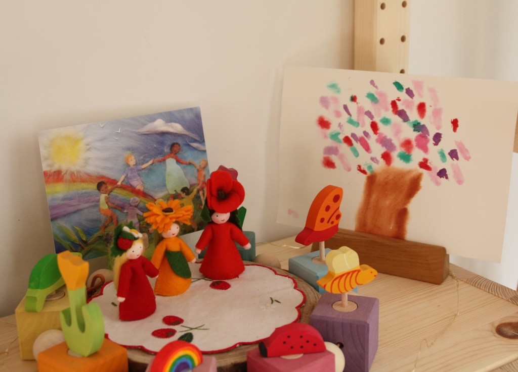 Qu’est-ce que la table des saisons ? C’est une sorte de petit autel avec des éléments naturels, figurines ou objets pour symboliser et célébrer la nature et ses changements au fil des saisons. J’ai découvert ce rituel en visitant une école appliquant la pédagogie Steiner-Waldorf (j’en parlais ici).