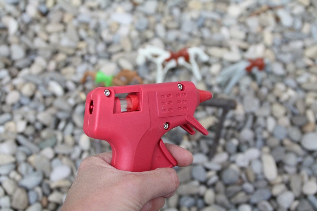 Pour la barrière, j’ai utilisé leur technique et collé quatre morceaux de bois avec le pistolet à colle. Pas facile de faire quelque chose de stable 😉