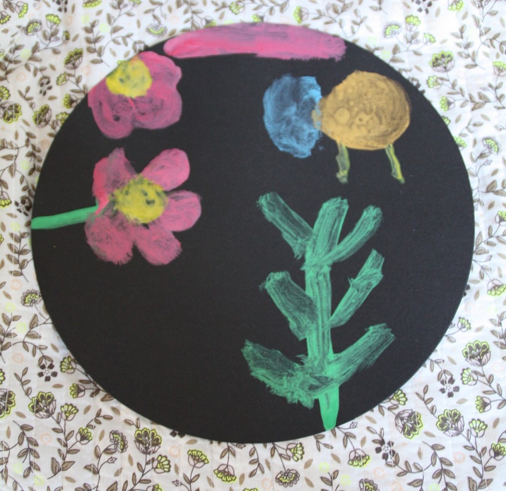 Et la cadette s’est amusée à décorer un terrier de taupe avec de la gouache.