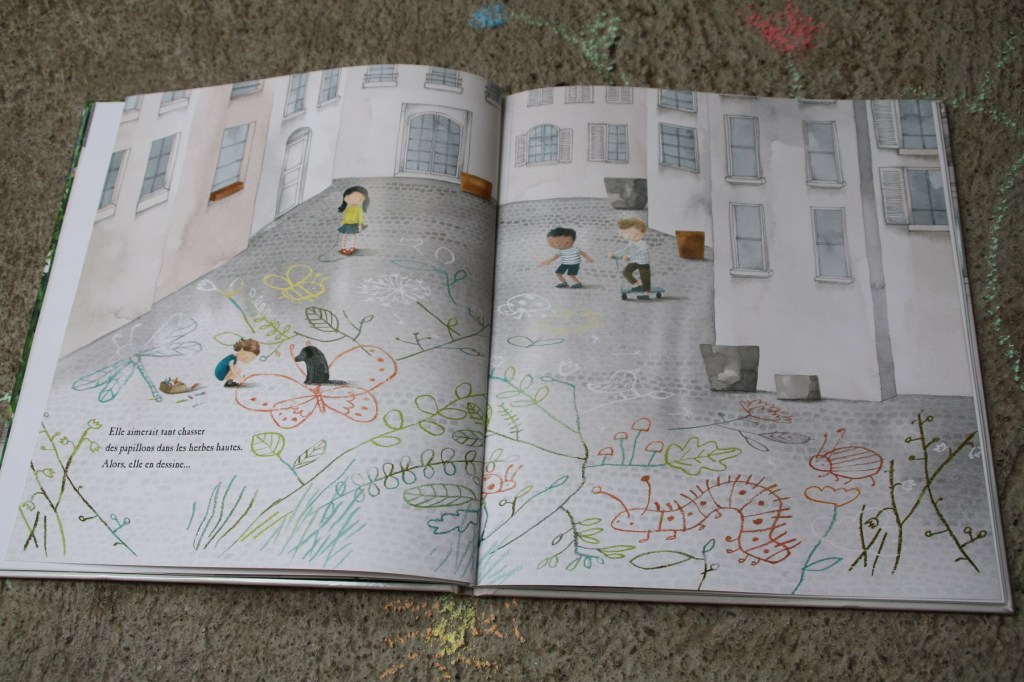 De jolies illustrations pour cette histoire d’une Maé déterminée et positive qui va faire découvrir les bienfaits de la nature à ses voisins citadins.