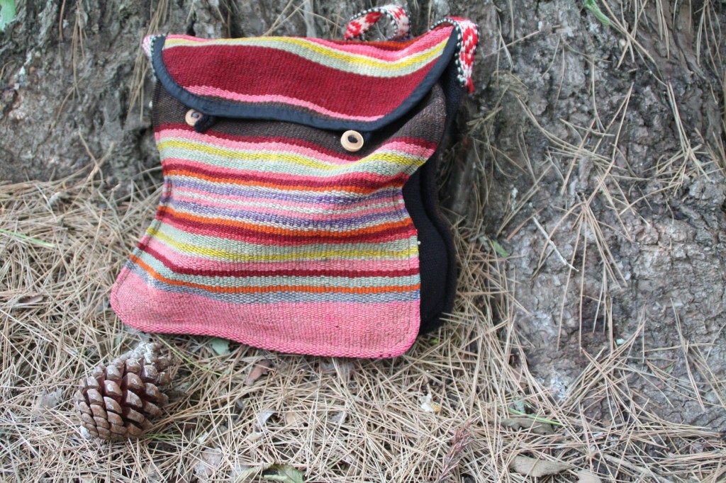 Nous emportions parfois une boussole, de la ficelle, un de nos carnets de nature… et toujours un sac à vrac pour y mettre pommes de pin, jolis cailloux et autres trésors trouvés en promenant.