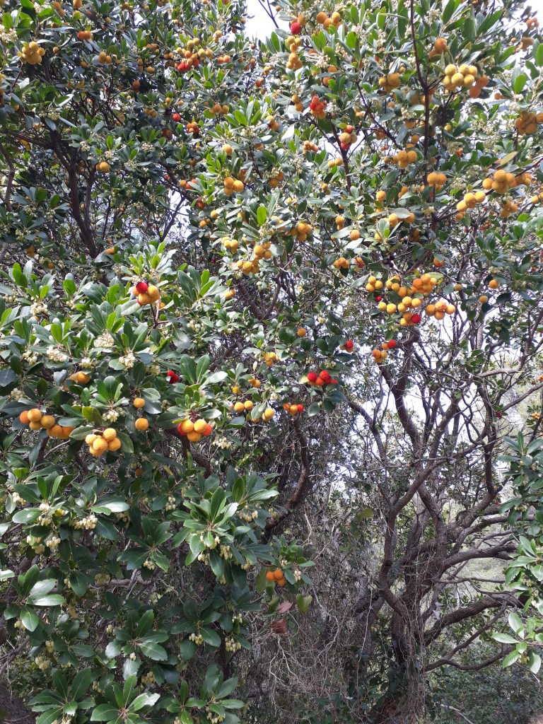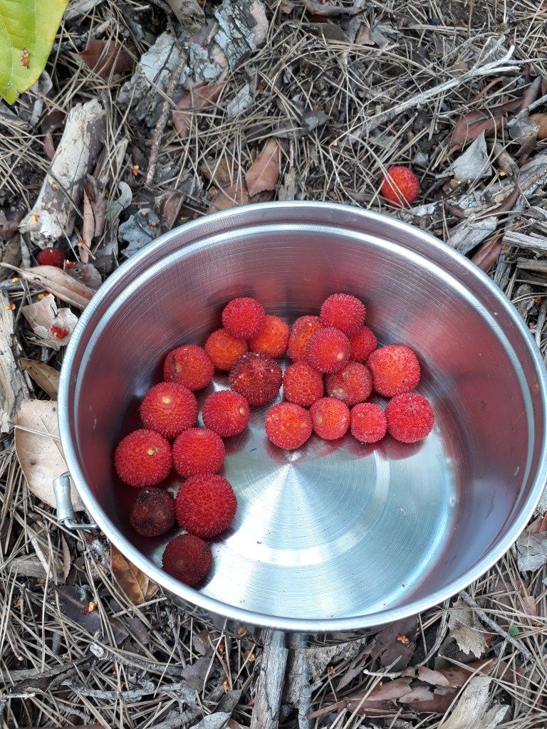 Ces arbustes produisent des arbouses, des petits fruits de la taille d’un litchis, sucrés et un peu acidulés. On les cueille d’octobre à novembre autour de la Méditérannée, quand ils sont bien rouges. J’en ai trouvé dans les Alpilles et nous les avons mangés crus, mais beaucoup en font de la confiture.