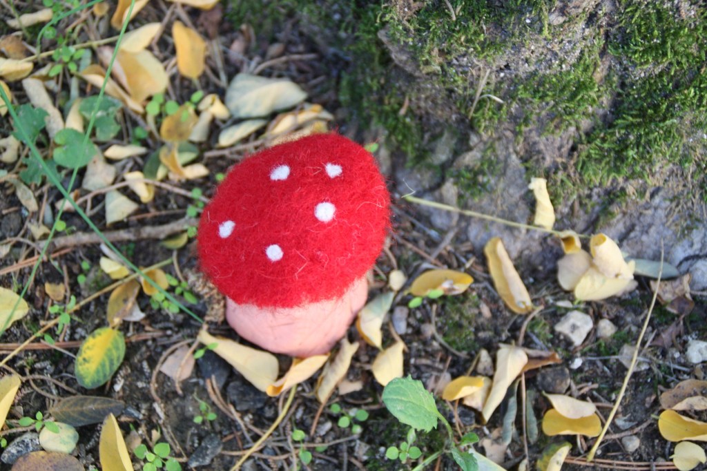 Il est très mignon ce champignon rouge à pois blancs, toxique, mais mignon. Je parle de l’amanite tue-mouche. Alors j’ai voulu en faire un pour notre décoration d’automne.