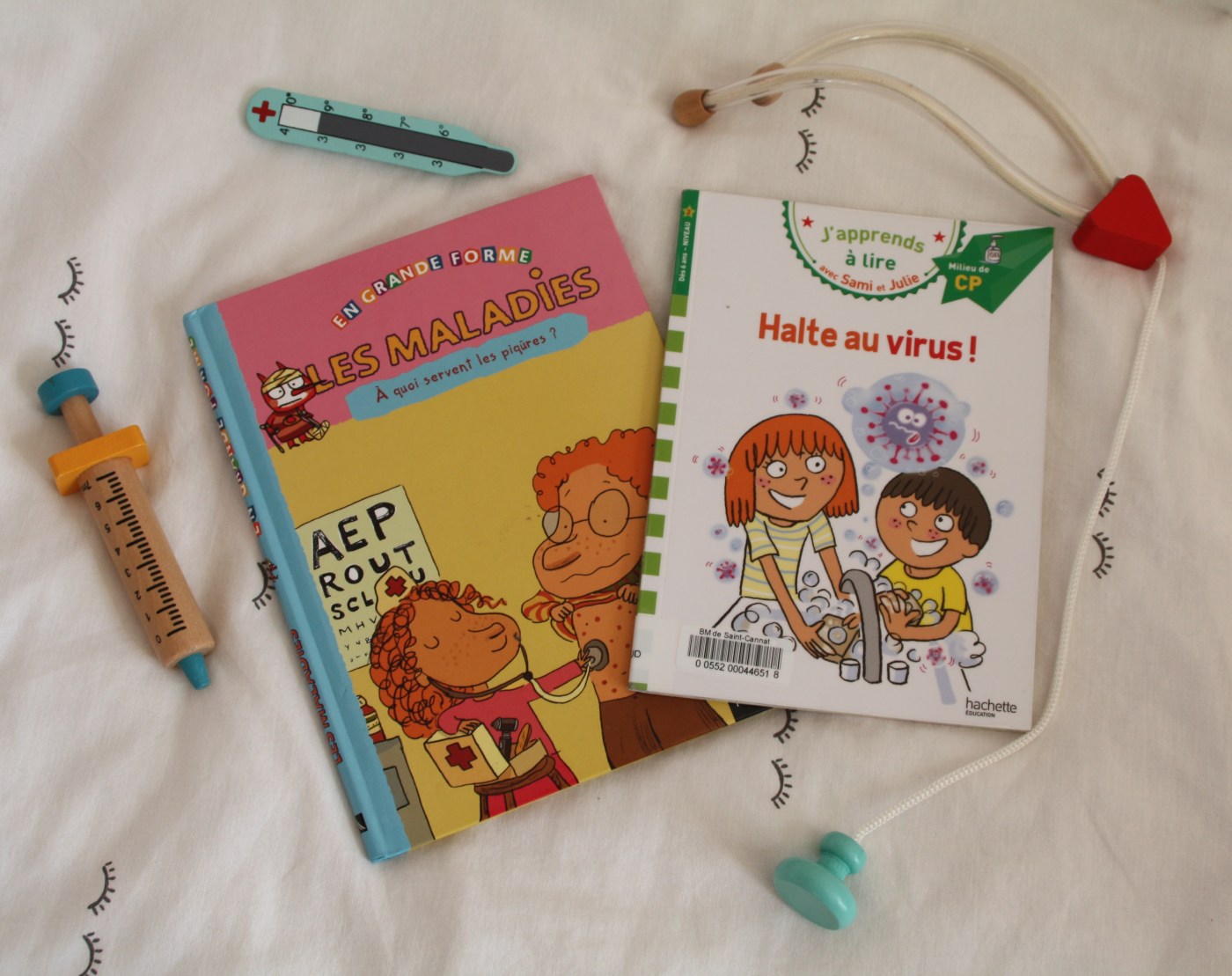 Le premier a été publié pendant le deuxième confinement. C’est l’histoire de Sami et Julie qui voient enfin leurs grands-parents après des semaines de restriction. Cela parle masque, distanciation, gel hydroalcoolique… La cadette l’a choisi et emprunté à la bibliothèque. Je n’avais pas forcément envie d’entendre ce nous vivons depuis de nombreux mois. Elle, elle y a vu un livre qu’elle pouvait lire toute seule. Bon point pour l’illustration expliquant comment bien se laver les mains.
