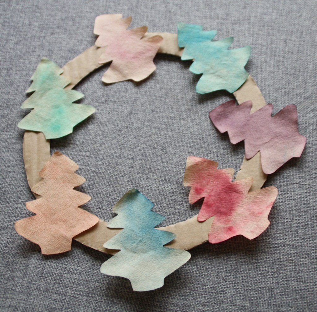 Voici encore un bricolage facile pour Noël : une couronne de sapins.