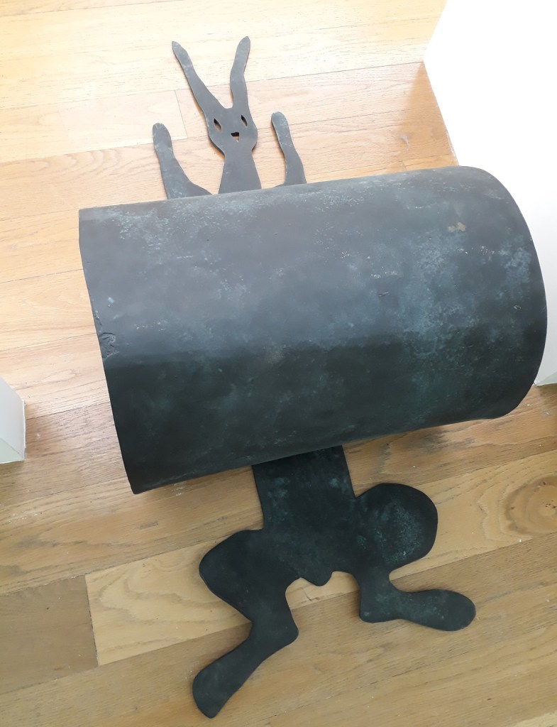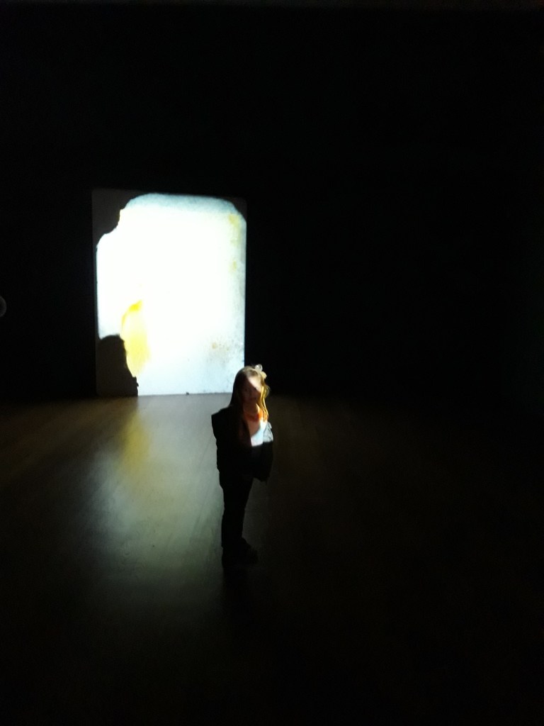 Puis, nous sommes allés découvrir le bâtiment principal du musée. Comme toujours dans l’art contemporain, il y avait du surprenant comme ces pièces plongées dans le noir à l’exception de ce que projeté d’anciens projecteurs plutôt bruyants, de l’amusant comme ce lapin en métal passé au rouleau compresseur.