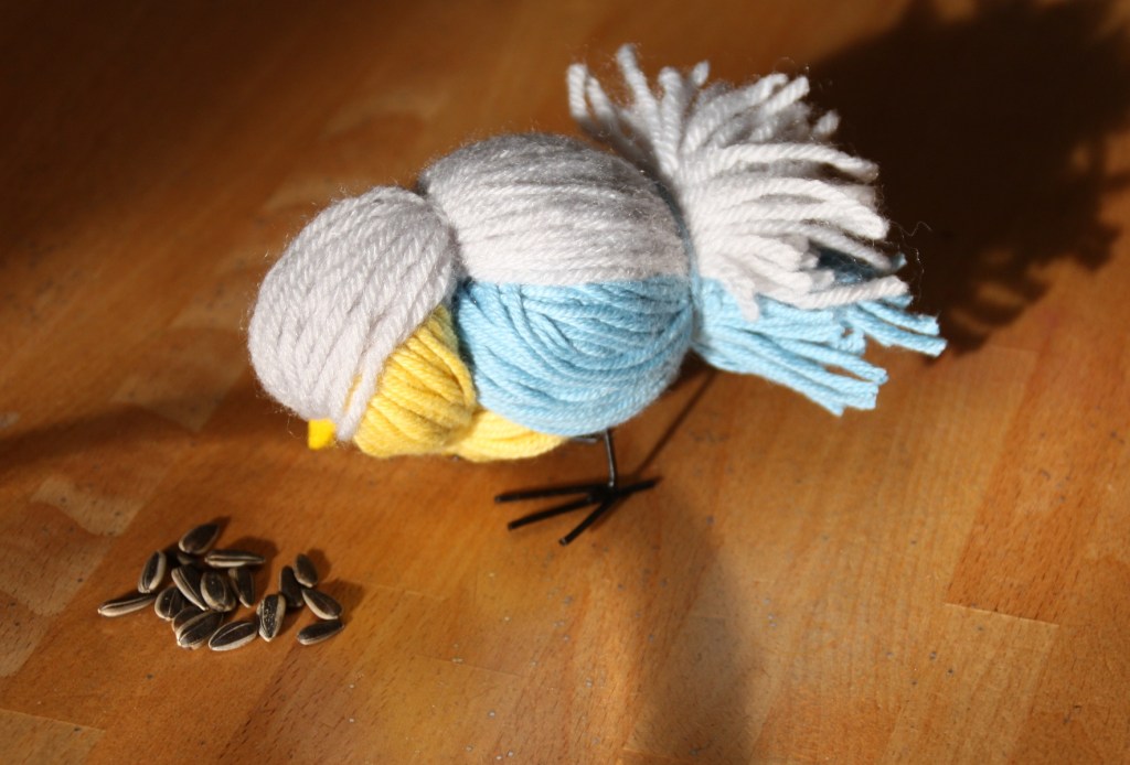 Voici un petit oiseau réalisé d’après une création en laine aperçue dans le jardin de Saint-Martin il y a quatre ans et avec des pattes métaliques trouvées dans la boutique Au son des grillons l’an dernier. Bref, cela faisait longtemps que je voulais faire cet oiseau en laine. J’ai trouvé facilement un tutoriel vidéo.
