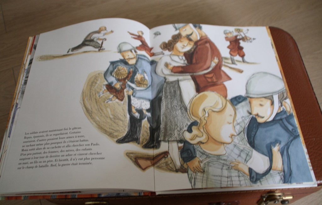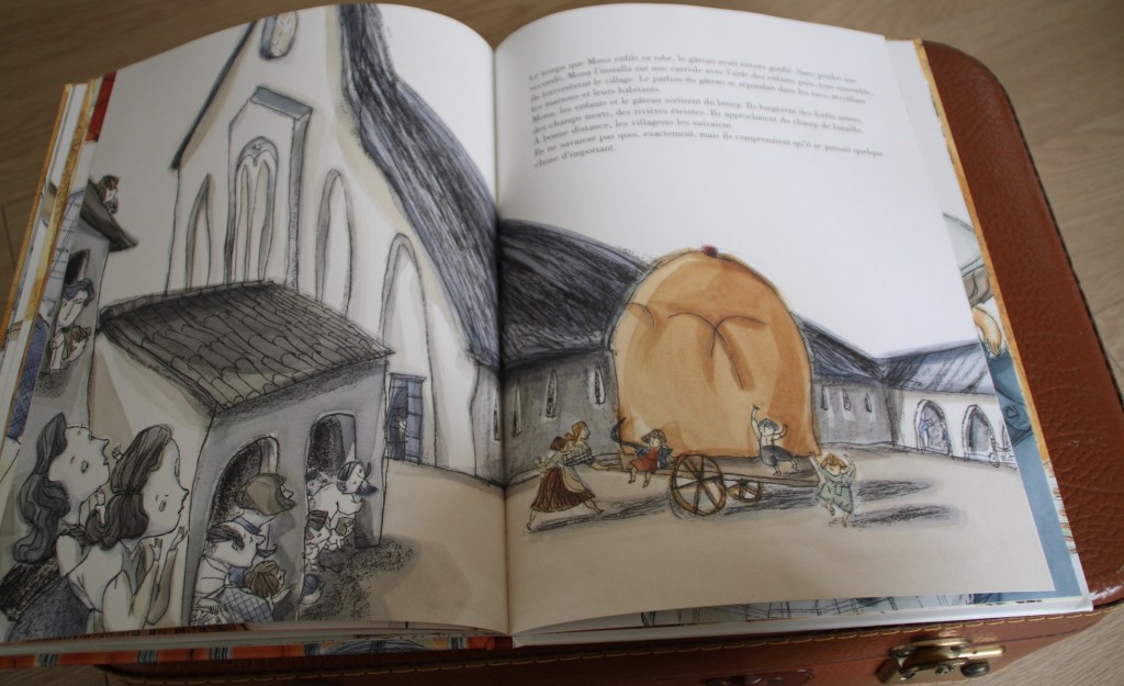 Le gâteau de paix est un livre de Didier Lévy et Tiziana Romanin publié chez Sarbacane. C’est un bel album, mais qui rappelle tellement la guerre qui se déroule actuellement en Ukraine. Malheureusement personne n’a encore trouvé la recette de la paix, même s’il y a beaucoup de gens déterminés et courageux comme Mona.