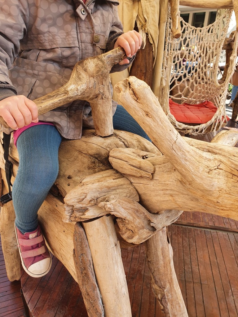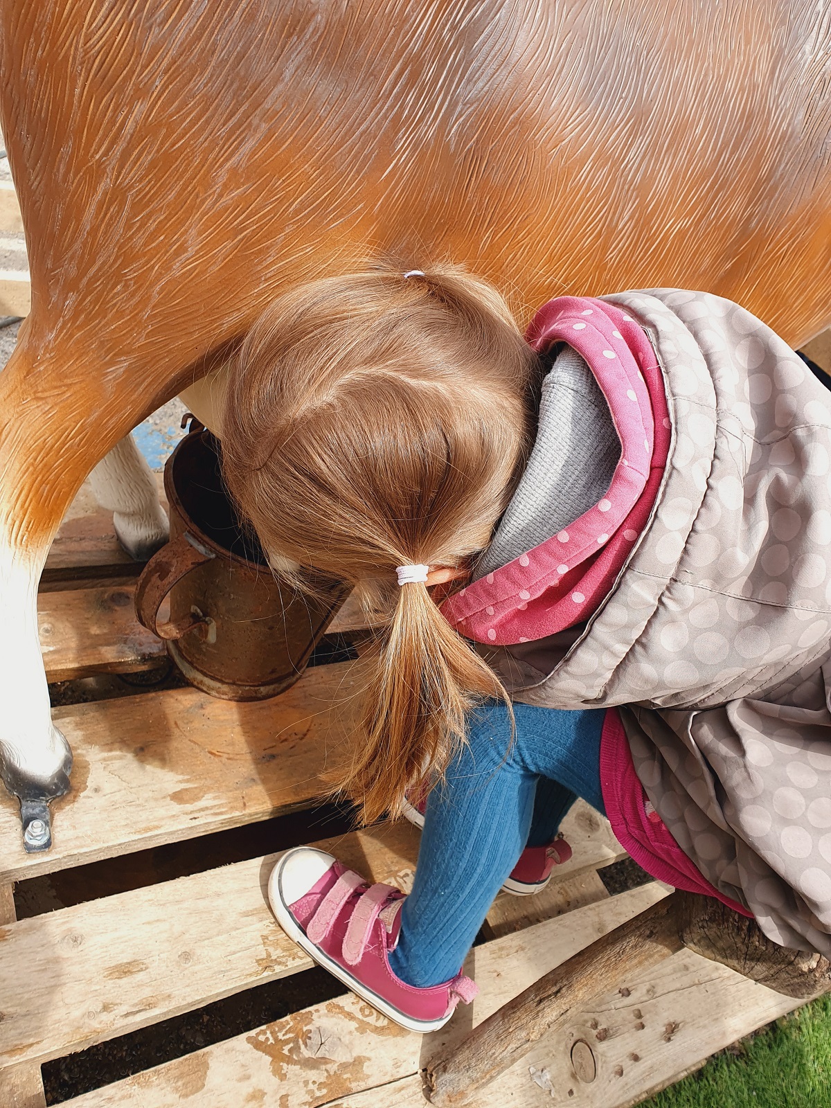 Nous y avons passé une partie de la journée. Les filles ont essayé de traire Cagette, chèvre heureusement en plastique 😉 Elles ont reconstitué Florette, chèvre en bois découpée en puzzle qui nous a appris que les chèvres avaient quatre estomacs. Elles ont profité des jeux en bois tels qu’abalone ou un jeu de babyfoot avec aimant. Les parents ont fait de la balançoire à bascule pour faire tourner le joli manège en bois. Nous avons profité du beau temps pour manger sur place des bruschettas au fromage de chèvre et des yaourts au lait de chèvre, bien évidemment.