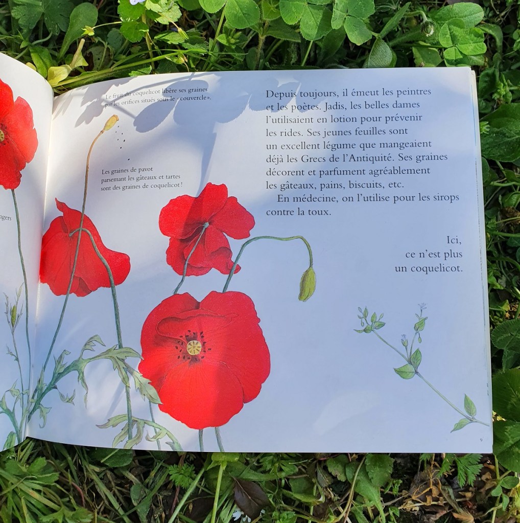 Dans ce livre Les bonnes mauvaises herbes, Dominique Maes et Colette Hellings nous emmènent en balade sur les sentiers à la découverte de ces plantes : trèfle, coquelicot, mouron blanc, ortie, pissenlit, chardon penché… Il y a même des recettes pour les préparer. Qui voudrait goûter des chaussons au coquelicot ?