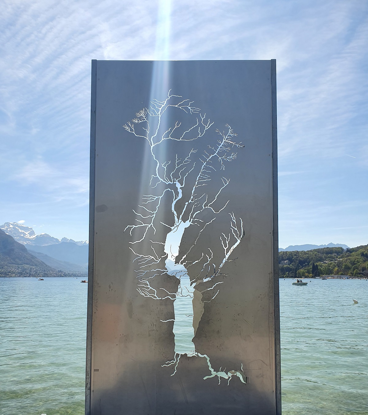 Le parcours complet dure 1h20 environ. Une carte et une application sont disponibles. Personnellement, nous n’avons pas cherché à le suivre, mais préféré juste découvrir les oeuvres au fil de nos balades dans Annecy, un peu comme des surprises 🙂
