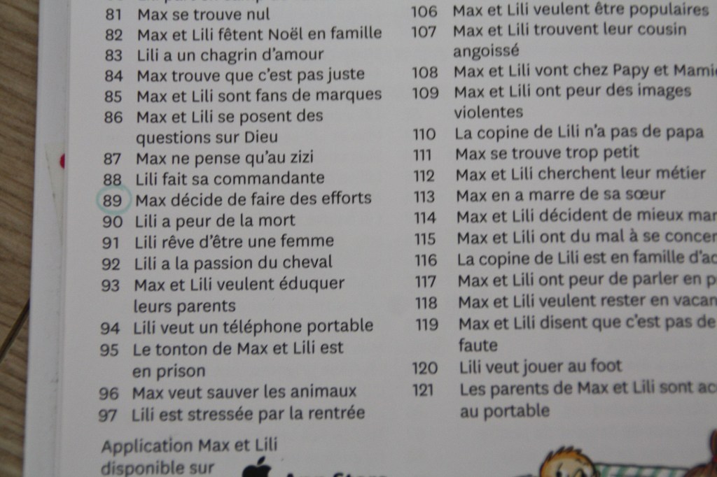 Bien évidemment, la réponse est chaise. Et le quatrième livre était caché sous une chaise, elle-même remisée dans une cabane. L’énigme suivante est ma préférée. Dans le livre Lili veut protéger la nature, j’avais entourée 5 nombres, d’une couleur différente, dans la liste des tomes déjà publiés. Chaque code couleur correspondait à un chiffre, qui permettait de mettre les nombres dans l’ordre et de former un numéro de téléphone. Alors, ça a réfléchi longtemps sur celle-ci, elles ont pensé à additionner les nombres… Mais elles ont fini par demander un téléphone pour pouvoir appeler (on a quand même du les orienter un peu).