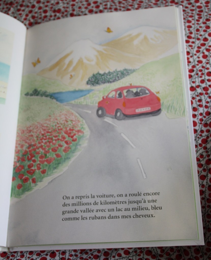 Une petite fille est emmenée sur les routes des souvenirs de vacances de son papa et ses grands-parents. Sauf que personne n’a les mêmes souvenirs. Et chacun donc va guider la famille sur le lieu de ses souvenirs. A travers la montagne, au bord de la mer, la famille se rappellent les bals du 14 juillet, les chasses aux papillons, les balades en pédalo… et bien sûr les glaces aux coquelicots. La fillette espère avoir autant de souvenirs à raconter lorsqu’elle sera grande.