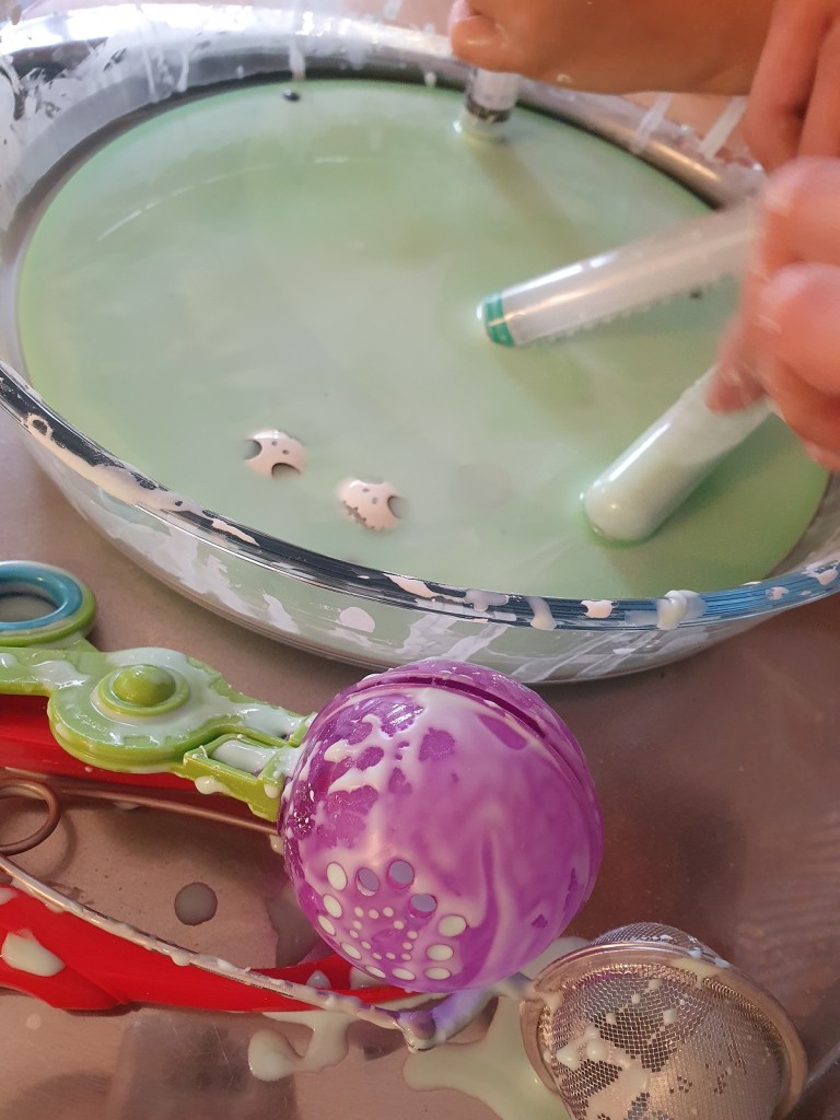 Avez-vous dĂ©jĂ entendu parlĂ© de l’oobleck ? C’est une drĂŽle de substance, une pĂąte Ă©paisse, qui semble liquide, mais qui devient plus compacte lorsqu’on essaie de l’attraper. Alors quand des cabachons s’enfoncent dedans, c’est sacrĂ©ment difficile de les rĂ©cupĂ©rer. Mais qu’est ce que c’est au juste ? C’est un mĂ©lange de deux portions de fĂ©cule de maĂŻs avec une portion d’eau. Avec avec du colorant alimentaire, c’est plus amusant de patouiller dedans.