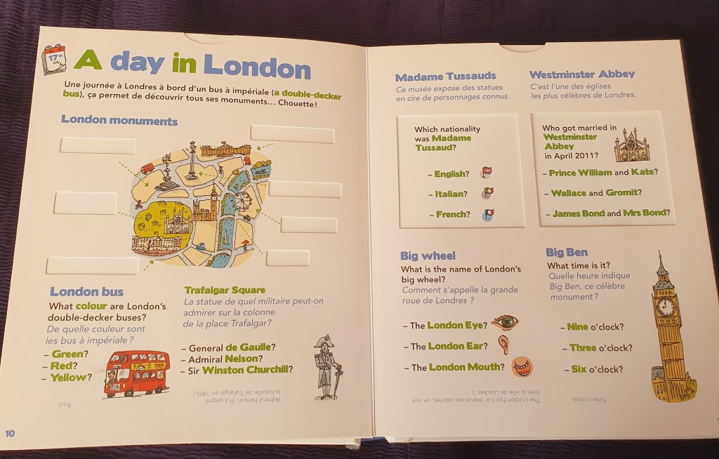 Voici un livre interactif et ludique parfait à regarder avant un voyage dans un pays anglophones (ou bien où l’anglais est assez parlé).