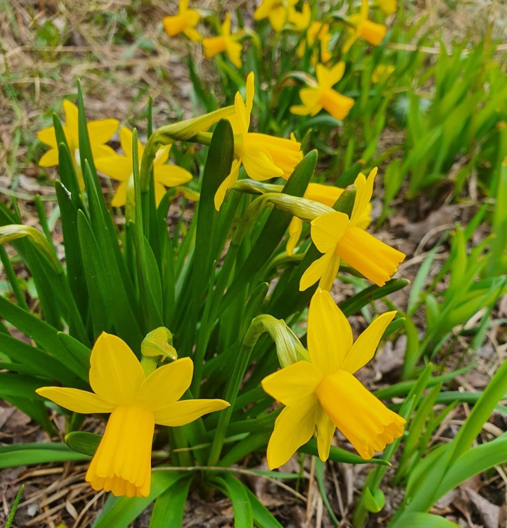 Les narcisses refleurissent dans la jardin.