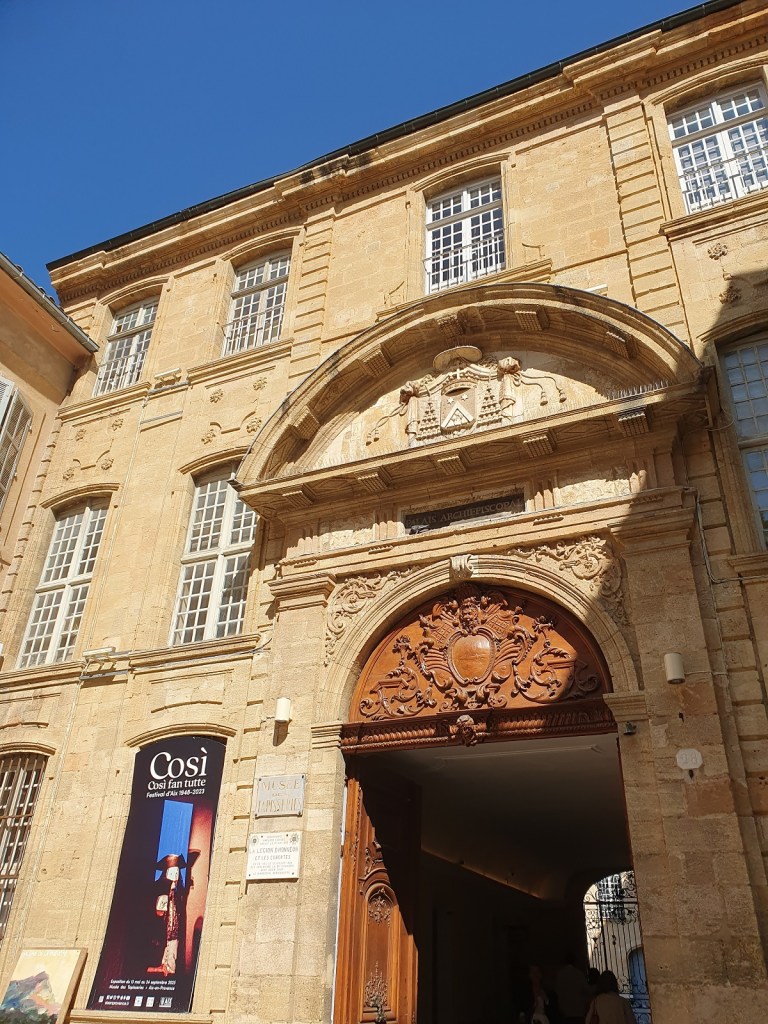Il y a des musées dans Aix qui se font discrets, pourtant ils sont dans le centre ville, disposent d’une superbe façade… peut-être un manque de communication. Je ne sais plus comment j’ai su qu’il y avait une exposition sur les costumes d’opéra au musée des tapisseries, mais c’était l’occasion d’aller découvrir ce lieu. Situé dans l’ancien palais de l’archevêché, l’endroit est très connu des amateurs d’opéra, puisque la cour abrite l’une des scènes du Festival d’art lyrique d’Aix. Le bâtiment est donc superbe et si on regarde attentivement la façade, on peut y voir une petite plaque annonçant la présence du musée des tapisseries.