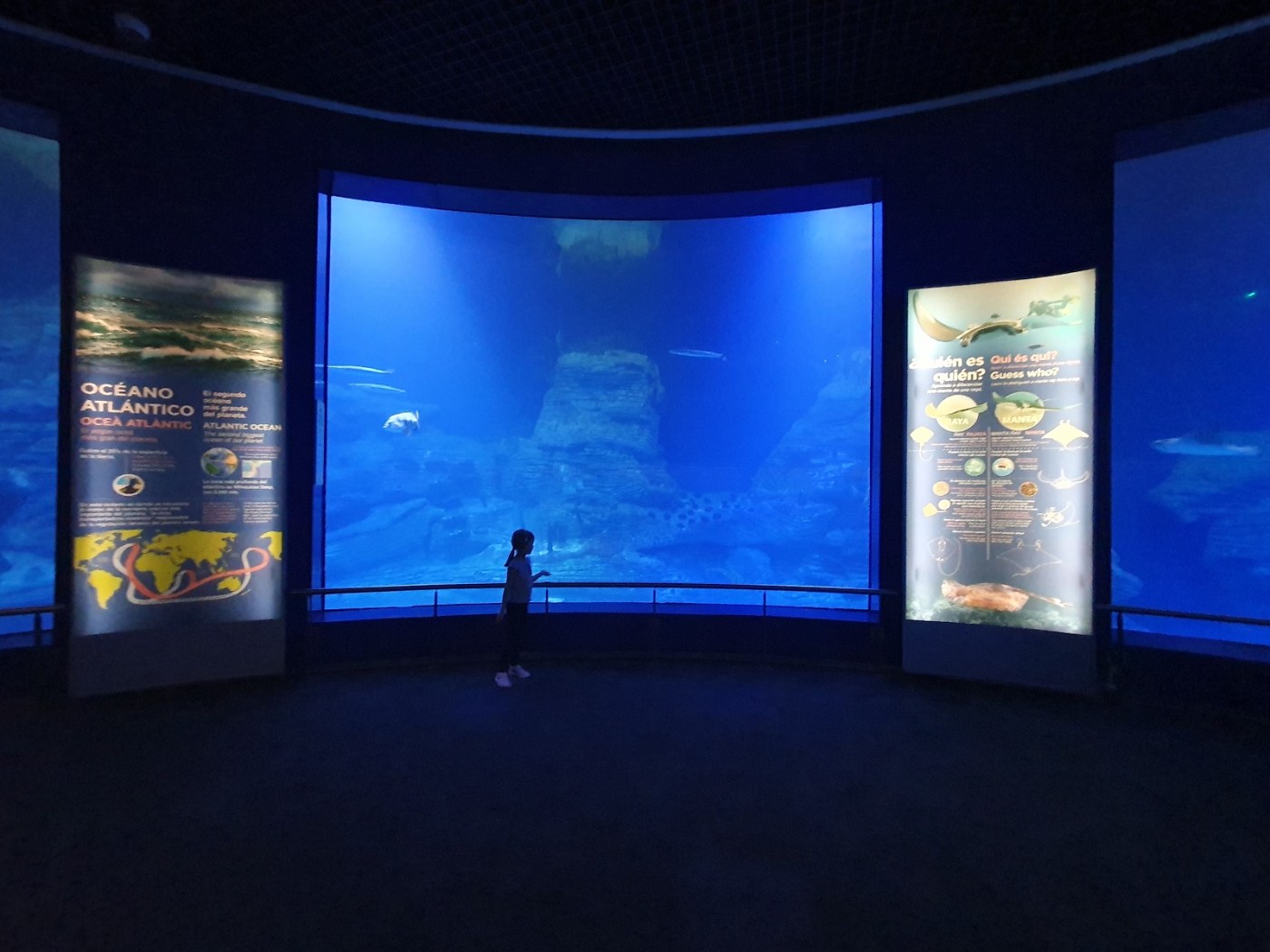 Il y a d’abord plusieurs très grands aquariums et tunnels avec les fonds marins de la mer Méditerranée, ceux des tropiques (avec, entre autres, des tortues vertes et des requins), ceux des eaux polaires (avec des