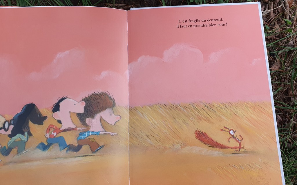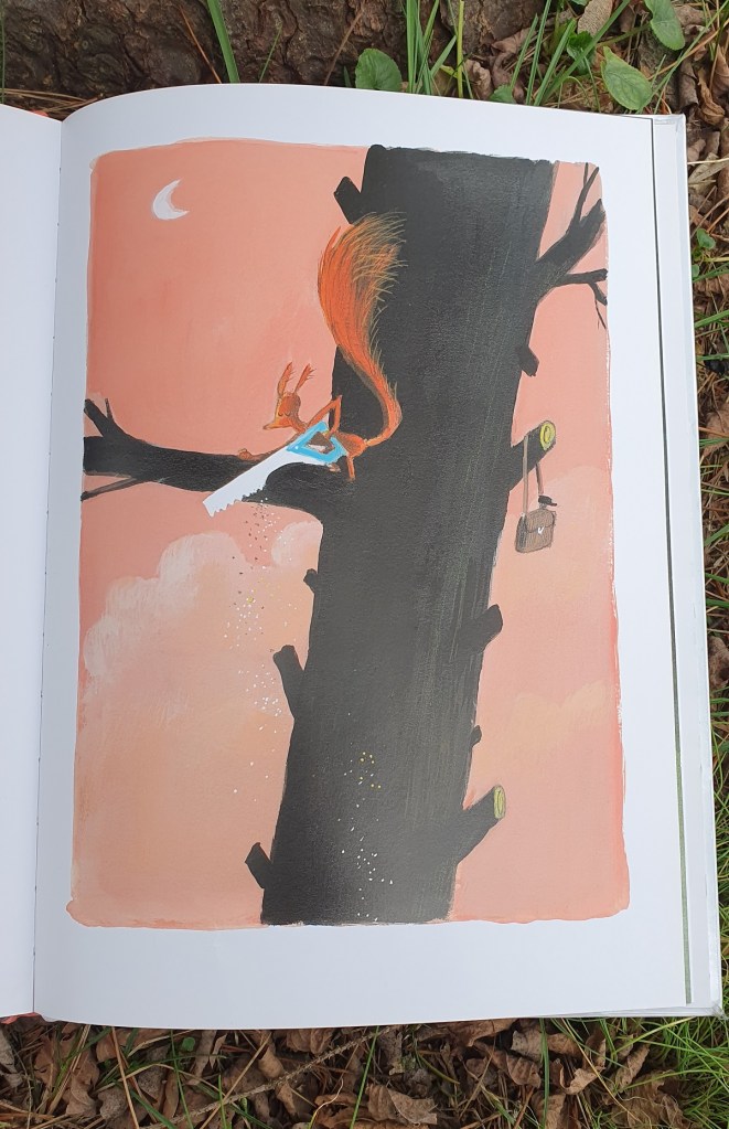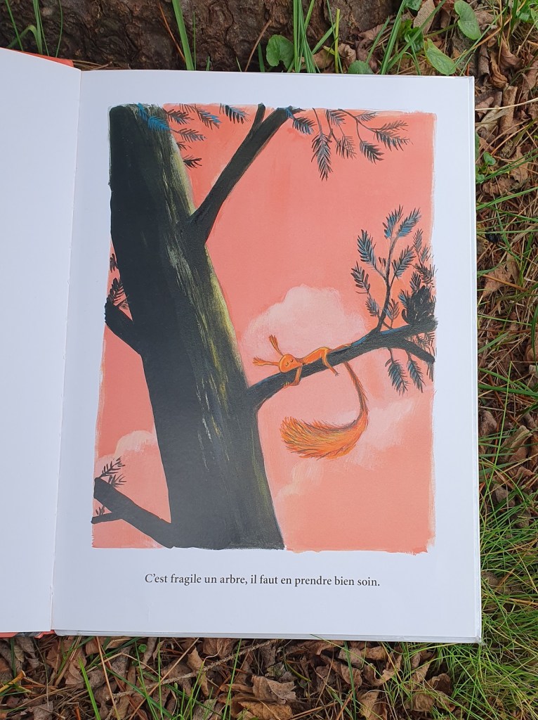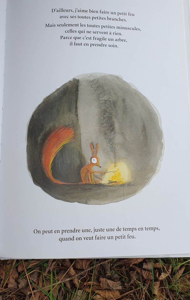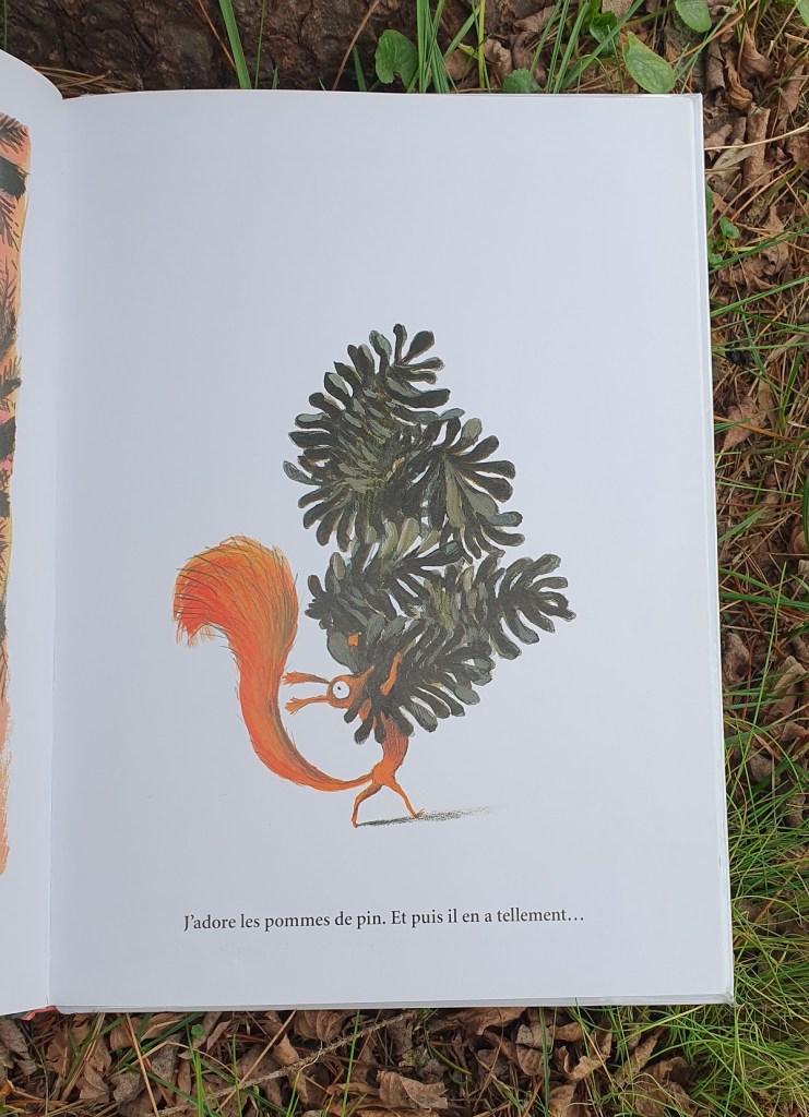 Choisi un peu au hasard, pour sa couverture et l’écureuil croulant sous les pommes de pin, j’ai été ravie de découvrir une histoire amusante. Elle m’a fait penser à Bientôt l’hiver, et son écureuil préparant l’hiver.