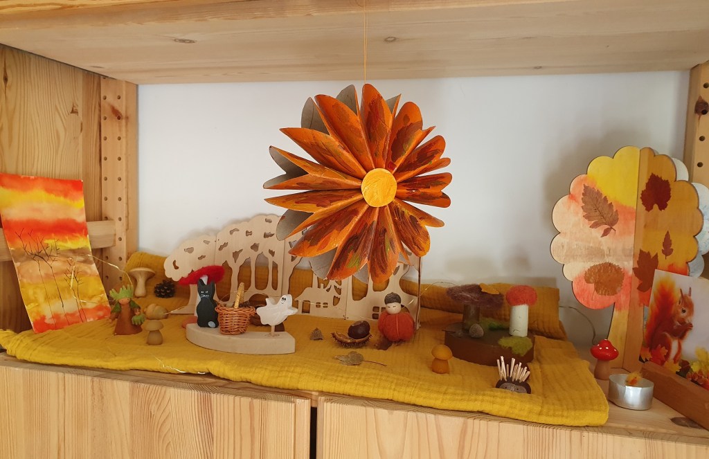 La table des saisons a pris des couleurs ocres et fauves, et avec deux nouvelles réalisations en laine feutrée.