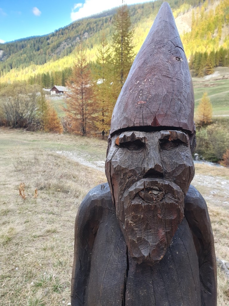 Cette balade du pont de l’Ubac à la cascade de la Pisse, longe le torrent du Mélezet au milieu des mélèzes. Et en cette saison, les mélèzes prennent de superbes couleurs. Très facile, avec un chemin large, elle prend environ deux heures aller-retour. Tout du long, il y a des sculptures en bois à retrouver : lutin, écureuil, sorcière… Il y a ici un plan, mais vous trouverez sûrement la version actualisée dans le village.