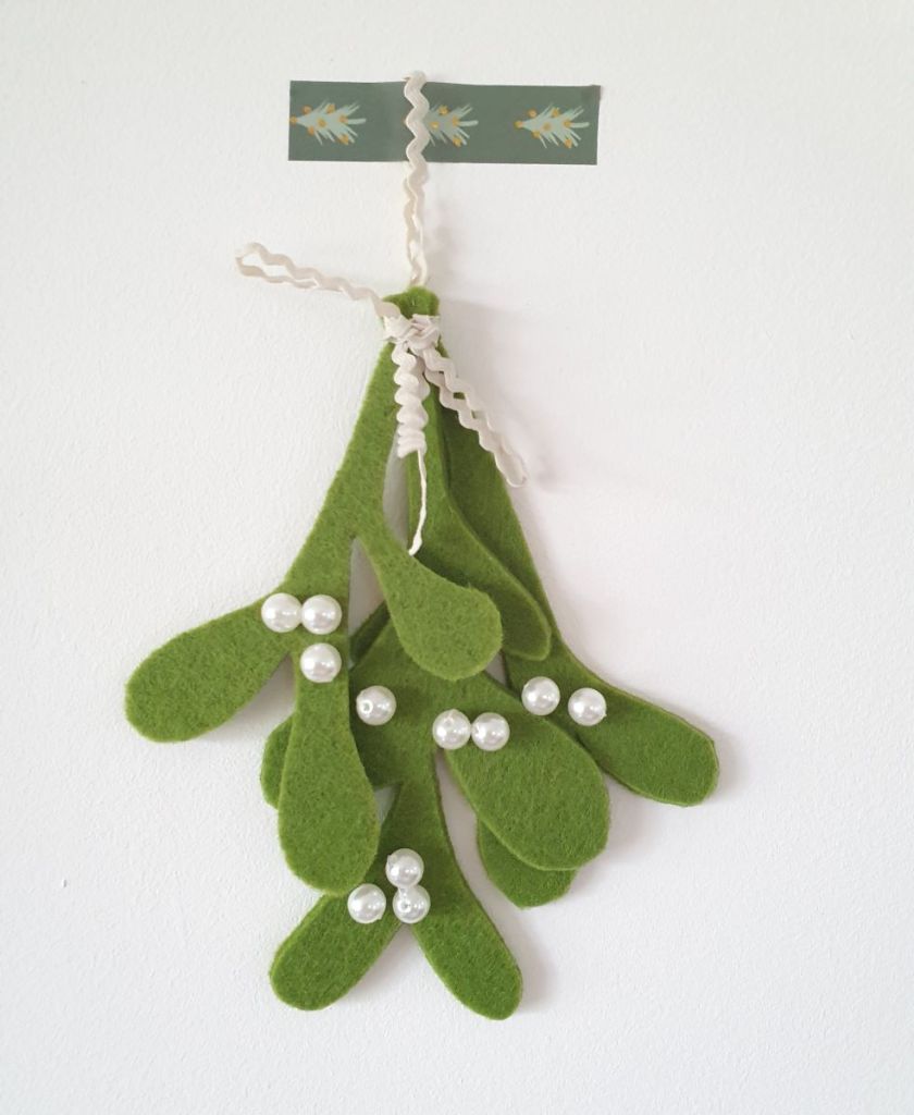 De le feutrine verte, quelques perles blanches et un tutoriel trouvé dans une ancienne revue Mollie Makes. Voici une branche de gui.